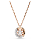 This captivating Dextera pendant showcases the beauty in movement. Suspended from a delicate chain with a lobster closure, the rose gold-tone design features a central hoop half encrusted with a pavé of clear crystals and a dancing Swarovski Zirconia placed in the middle. Pair with a matching set of earrings for a joyfully extravagant look.