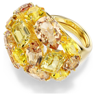This joyful Gema cocktail ring is like holding a ray of sunshine in your hands. The gold-tone plated design is crafted with a collision of crystals in various cuts and yellow and amber tones, while also featuring an adjustable mechanism for the perfect fit. This ring is emblematic of Gema’s unexpected formations and vibrant beauty, and glows even brighter when worn alongside matching jewelry pieces from the same family.