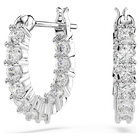 This pair of pierced earrings by Swarovski is a delightful, timeless piece of jewelry. Both hoop earrings are set with numerous sparkling white stones that enhance their attractive look with subtle glimmer. Best worn with matching necklaces and bracelets, these earrings are a delightful gift for casual occasions.